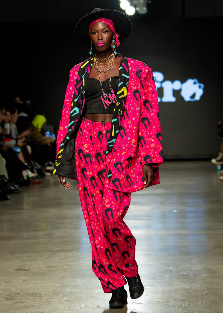 American: XL shoulder pads. Loose fit with yellow inner lining. Long black lapel and false pockets.